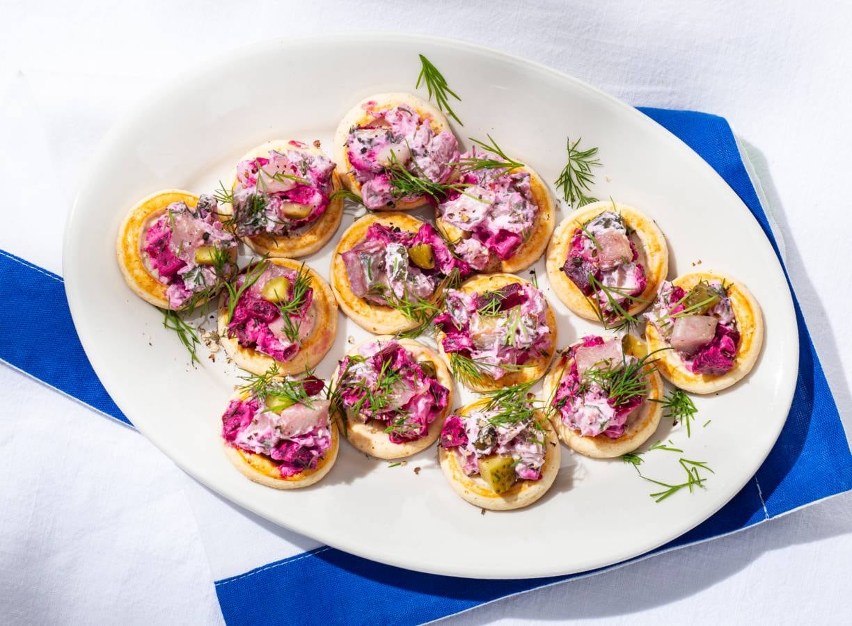Niets kan tippen aan de combinatie van haring, bietjes en zuur. Helemaal niet als het hapje er ook nog eens zo vrolijk uitziet.