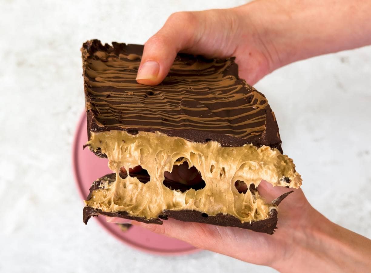 Deze bar heeft het allemaal: een knapperige chocolade buitenkant, een zachte hazelnootpasta vulling en een lekkere crunch.