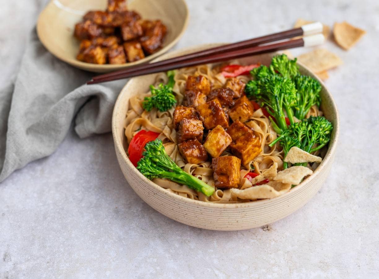 Krokante spicy pindatofu met noedels van Vivera (advertentie)