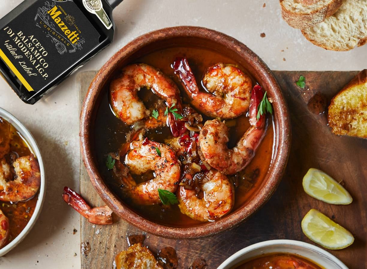 Koken met Mazzetti: De reuzengarnalen in een saus van knoflook, chili, peterselie en Mazzetti balsamico zorgen voor een rijke, mediterrane smaaksensatie.