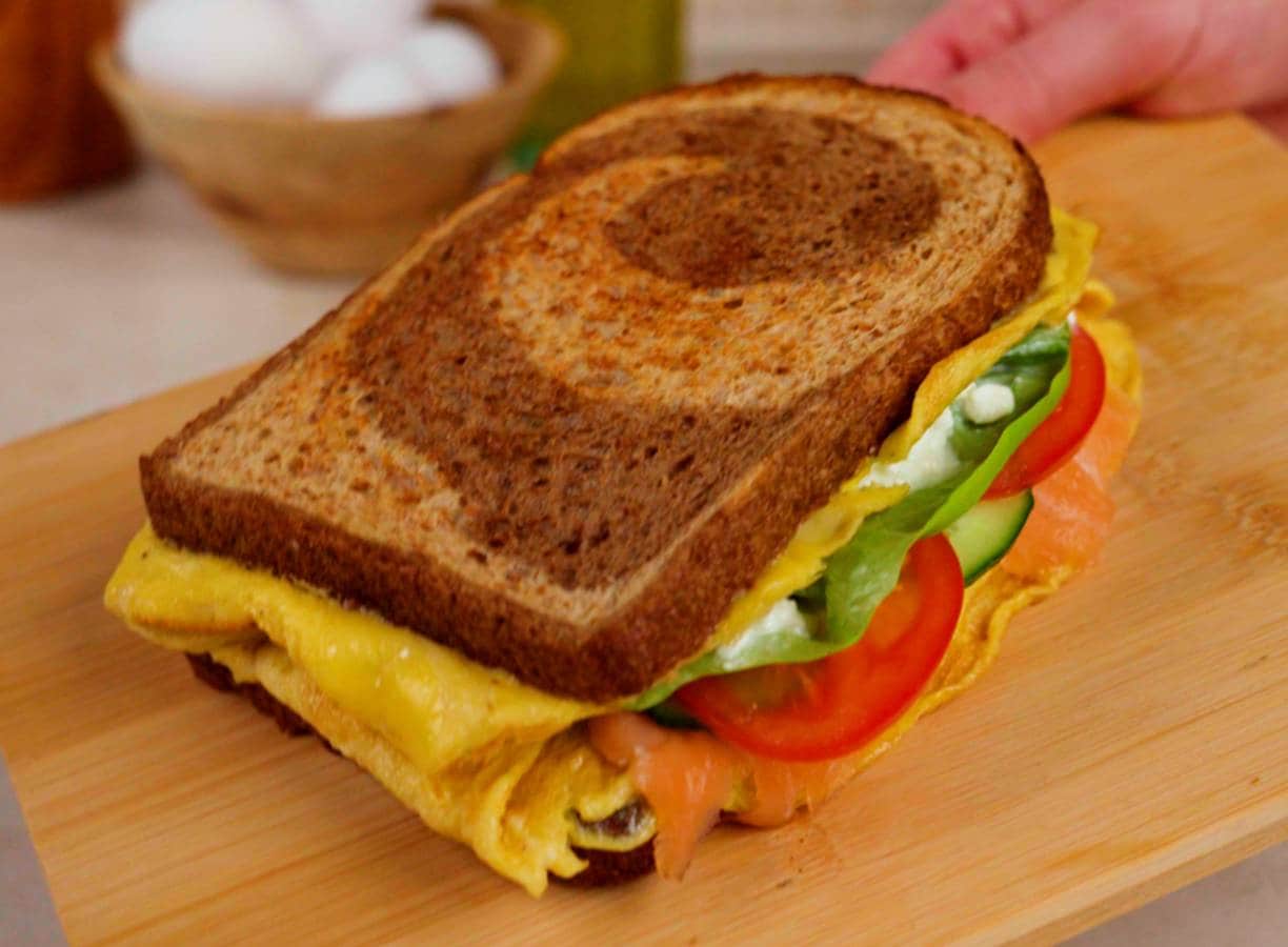 Swirlbrood sandwich met omelet