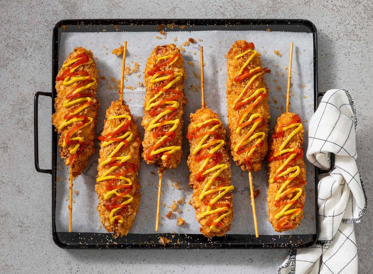 Deze Koreaanse corn dog is je nieuwe favoriete snack. De variant op de Amerikaanse versie heeft o.a. als verschil dat er een klein laagje suiker over wordt gestrooid, dat geeft een interessant smaakcontrast.