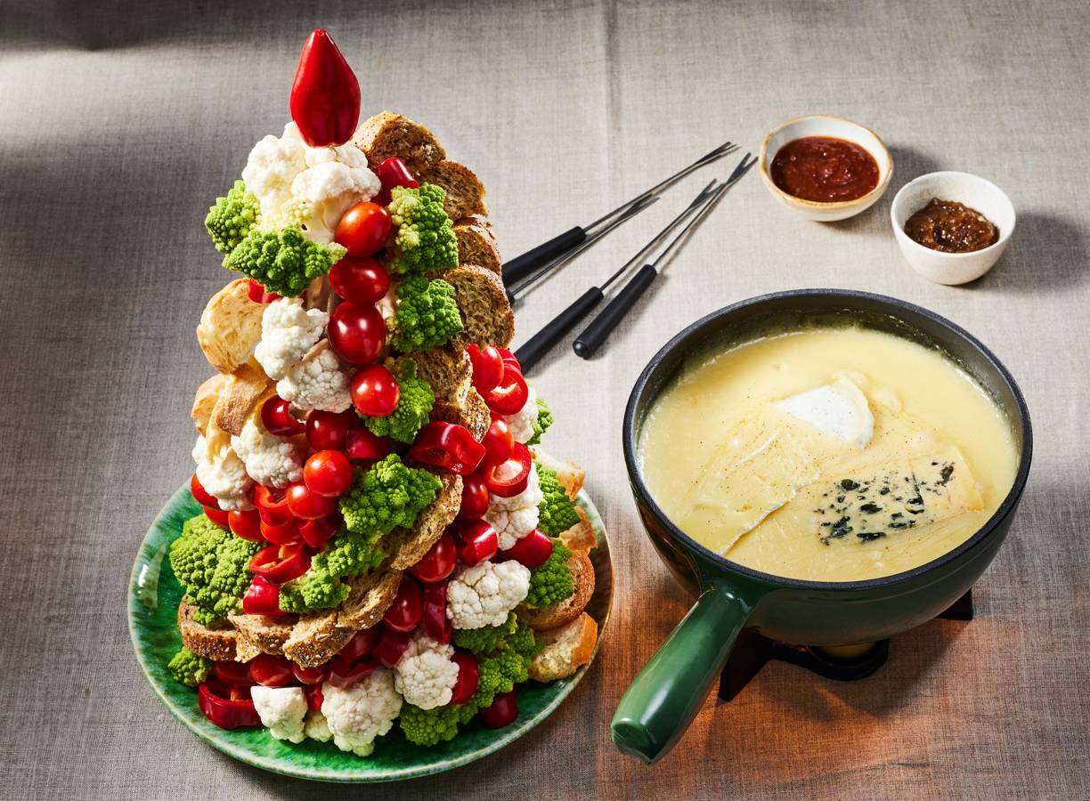 Je favoriete kaasjes van de kaasplank, maar dan in de fondue. Maak met behulp van de serveertoren een boom voor de dips om samen te delen. Extra gezellig!