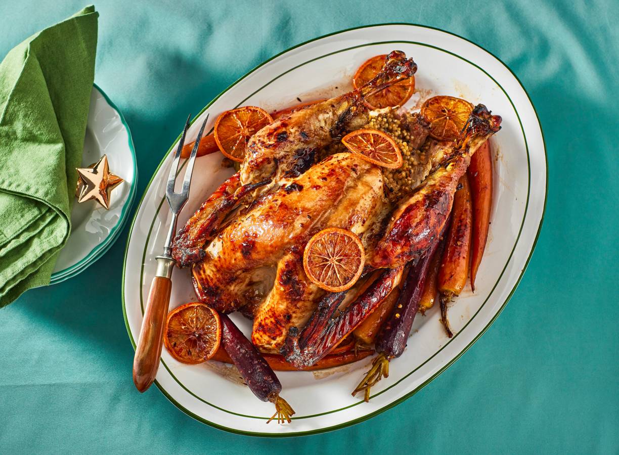 Gevulde kalkoen met hot honey en geglaceerde worteltjes