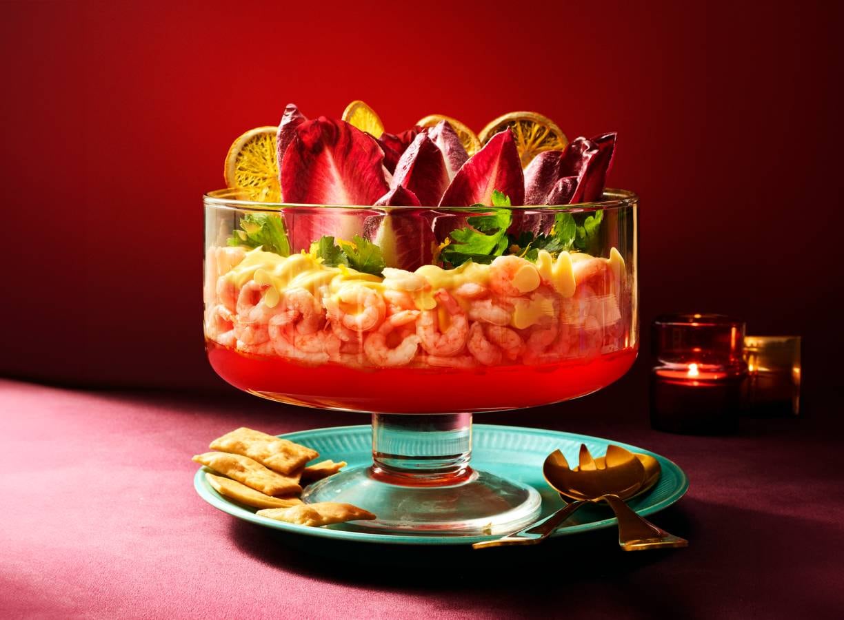 Dat is een onverwachts lekkere verrassing: de smaak van de populaire Aperol in je garnalencocktail. Serveer 'm in een feestelijke trifle-schaal en succes is gegarandeerd!