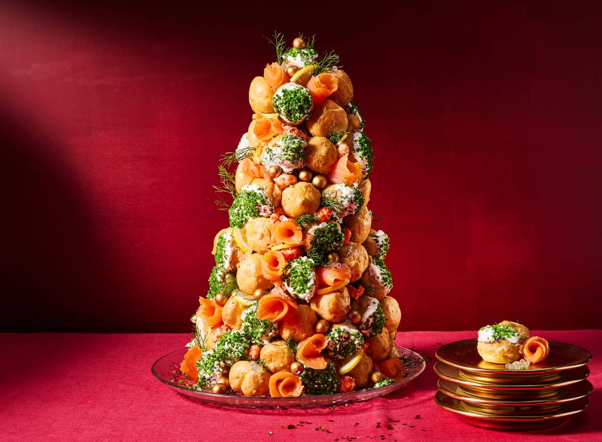 Indruk maken tijdens het kerstdiner? Deze hartige soezentoren met gerookte zalm is een feestje van een voorgerecht! Je vult de soezen zelf met een romige rivierkreeftjesvulling en versiert de toren met prachtige parels en roosjes van zalm.