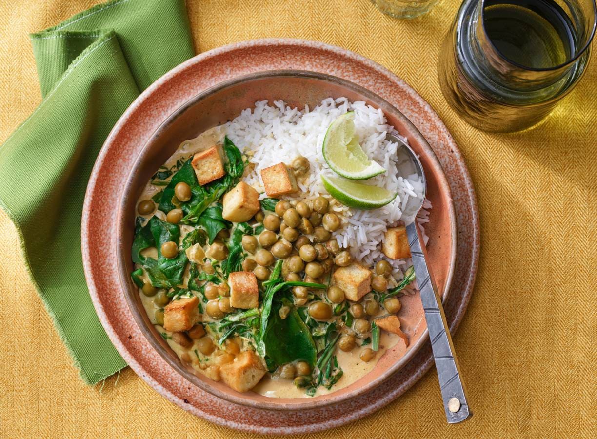 Perfect voor doordeweeks: deze vegan curry met bonen, tofu en spinazie zet je in maar 25 min. op tafel!