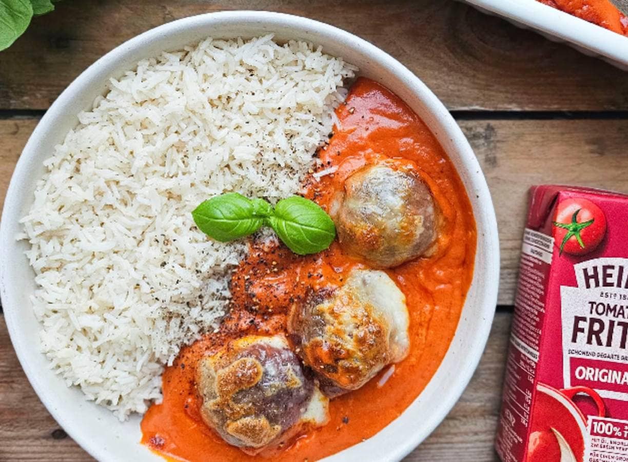Gehaktballetjes in tomatensaus met rijst van Heinz (advertentie)