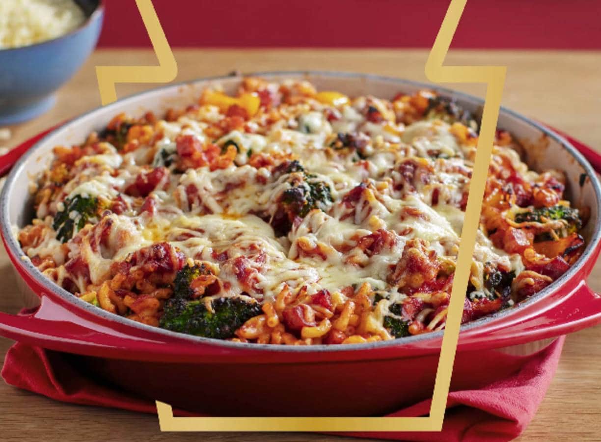 Koken met Heinz: terwijl de macaroni in de oven gratineert, ruikt de keuken al heerlijk naar paprika, ham en kruidige tomatensaus.