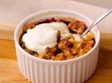 Verdeel de cruesli over het fruit en bak 20 min. in de oven.
