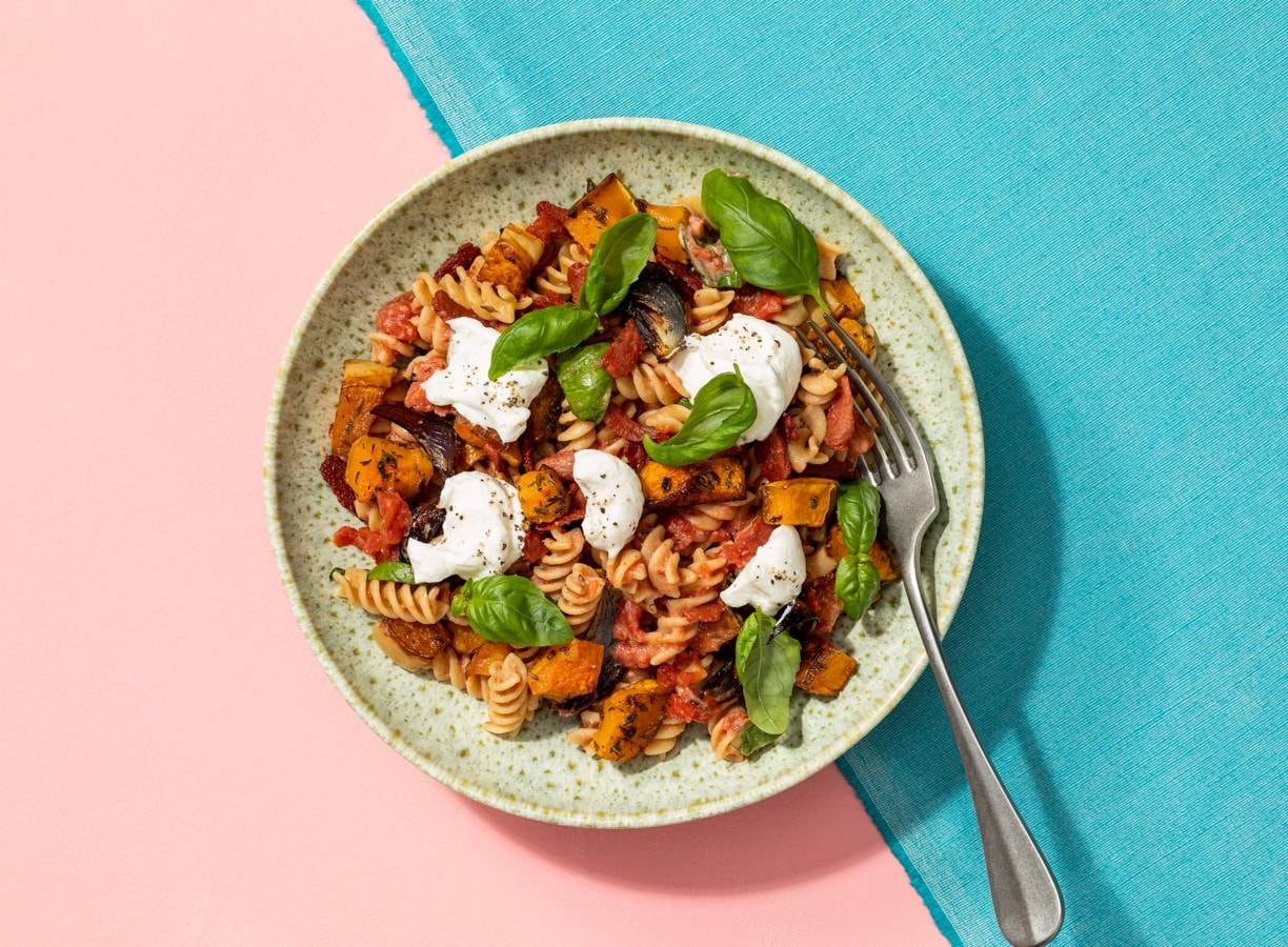 Fusilli met tomatensaus en geroosterde pompoen (advertorial)