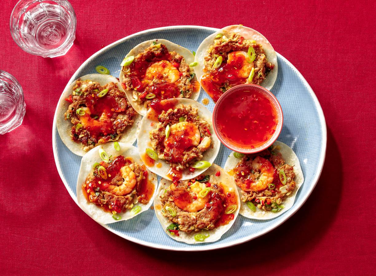 Zin in gyoza? Niet vouwen, maar smashen! In deze variant plet je de vulling op het vel en bak je 'm knapperig in de pan. Dubbelvouwen, dippen en go!