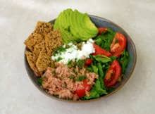 Deze heerlijke eiwitrijke tunacado saladbowl is ideaal als powerlunch. Zowel thuis als op kantoor in een handomdraai gemaakt.