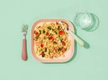 - bereidingstipMaak voor de baby’s (8+ maanden) een hapje met courgette, tomaat, cannelinibonen en een paar druppels olijfolie.