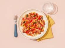 Koken met Kindergarden: Een kleurrijke en voedzame chili boordevol bonen en groente, geserveerd met zilvervliesrijst! Mild van smaak voor kinderen.