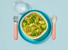 variatietip:Maak voor baby’s (8+ maanden) een hapje met broccoli, erwtjes, basilicum, orzo en olijfolie.