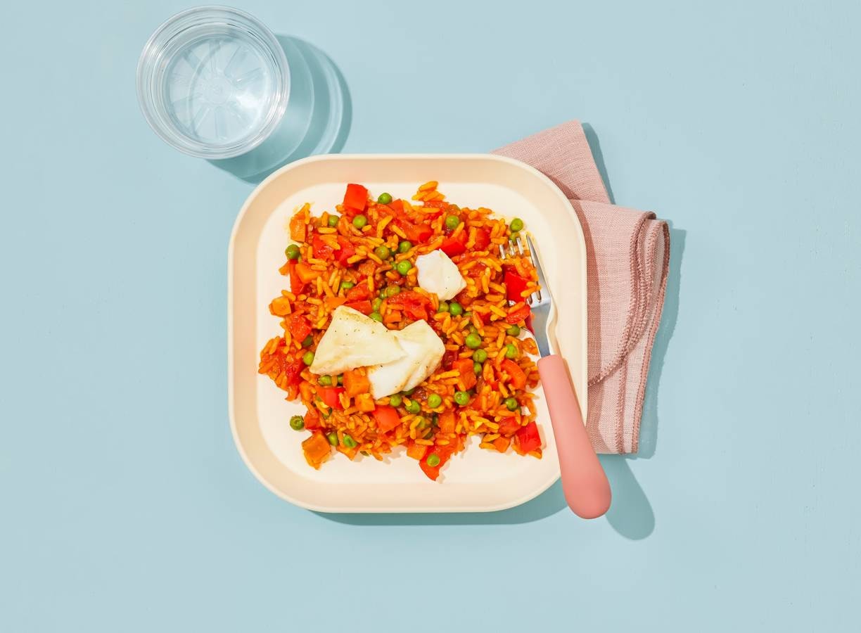 Koken met Kindergarden: Een paella vol zachte groenten en malse vis. Een gerecht dat kinderen op de opvang heerlijk vinden en dat je thuis ook makkelijk maakt!