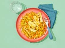 variatietip: Voor volwassenen kan je het serveren met kroepoek en voeg wat sambal of extra chilivlokken toe voor meer pit. Voeg eventueel zout naar wens toe.