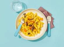 variatietip:Garneer voor volwassenen met rucola, pompoenpitten en voeg eventueel chilivlokken toe voor wat pit. Voeg eventueel zout toe naar wens.