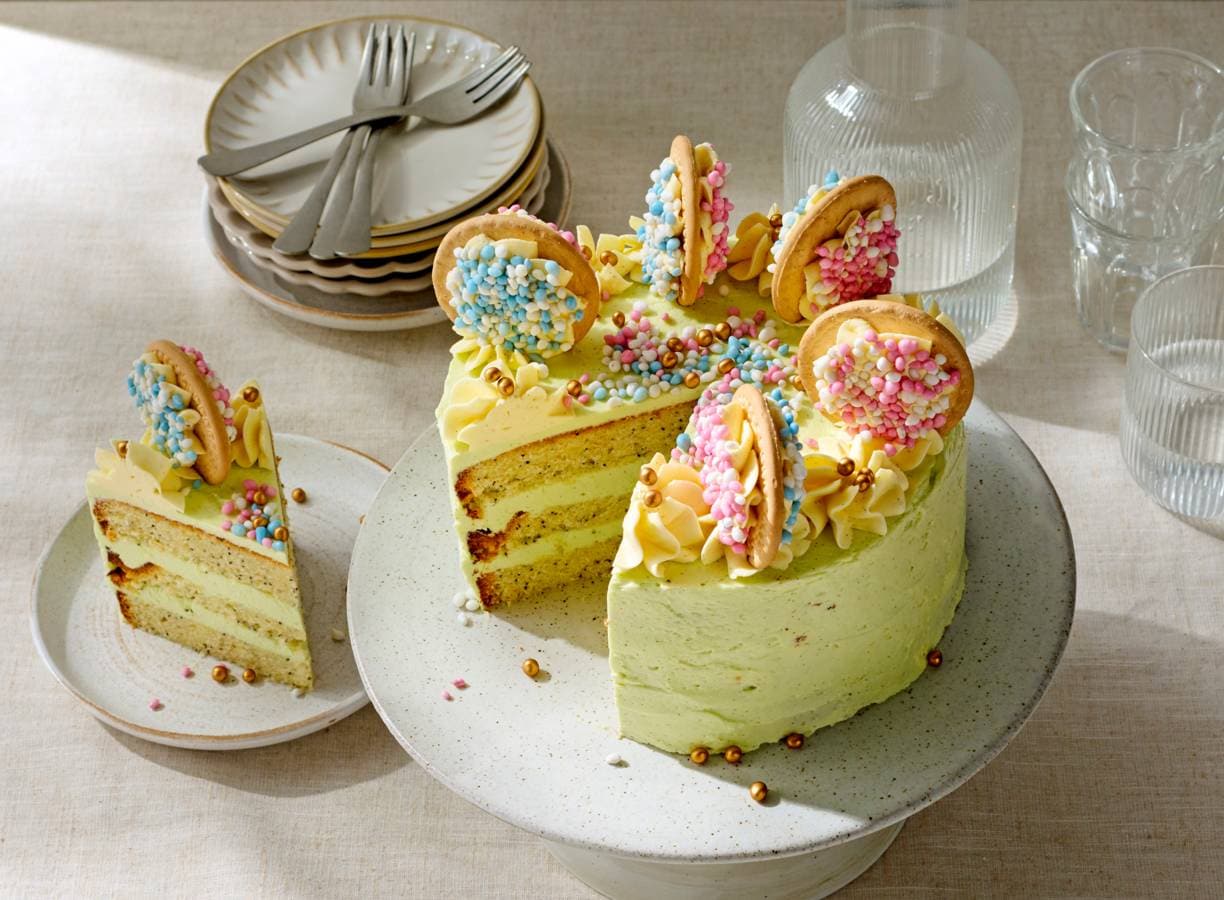Wat hoort er bij babyshower? Juist, taart! En niet zomaar taart: deze babyshowertaart is gemaakt met 'lemon poppyseed' en een mooie mintgroene botercreme. Dat ziet er toch waanzinnig uit?