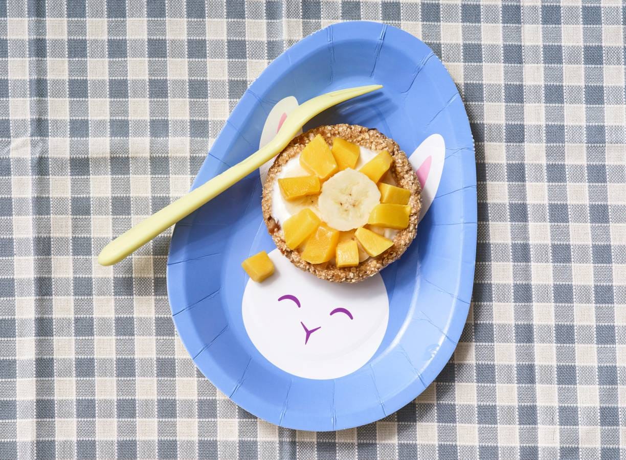 Deze nestjes van havermout, banaan en yoghurt lijken wel taartjes! Dat is nog eens een feestelijke start van de dag!