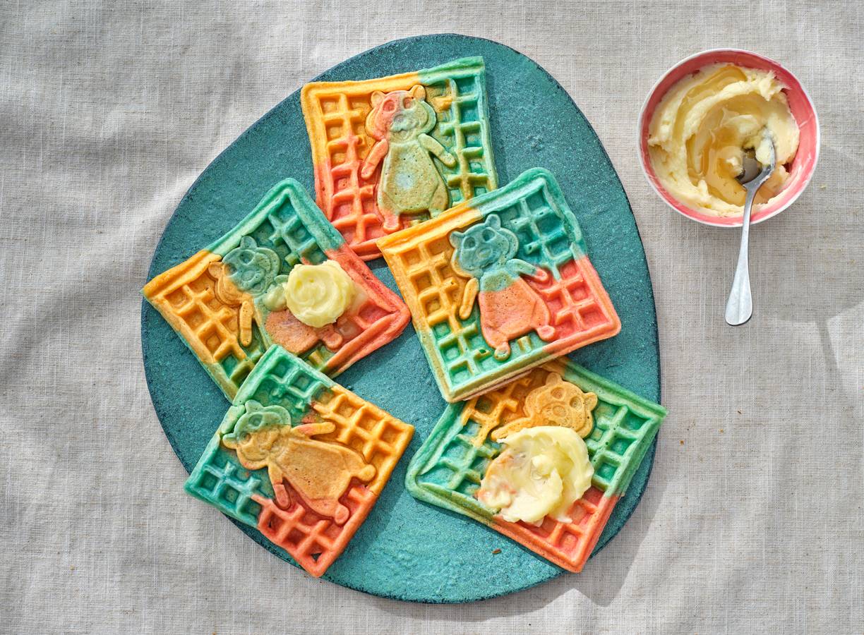 Vrolijk Pasen! Dat is het zeker met deze kleurrijke hamsterwafels. Ga aan de slag met kleurstof in je wafelbeslag en bakken maar!