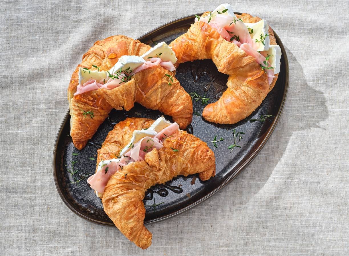 Vergeet goedgevulde broodjes op de brunchtafel. Ga voor goedgevulde croissants! Wat dacht je van deze variant met brie, ham, honing en tijm?