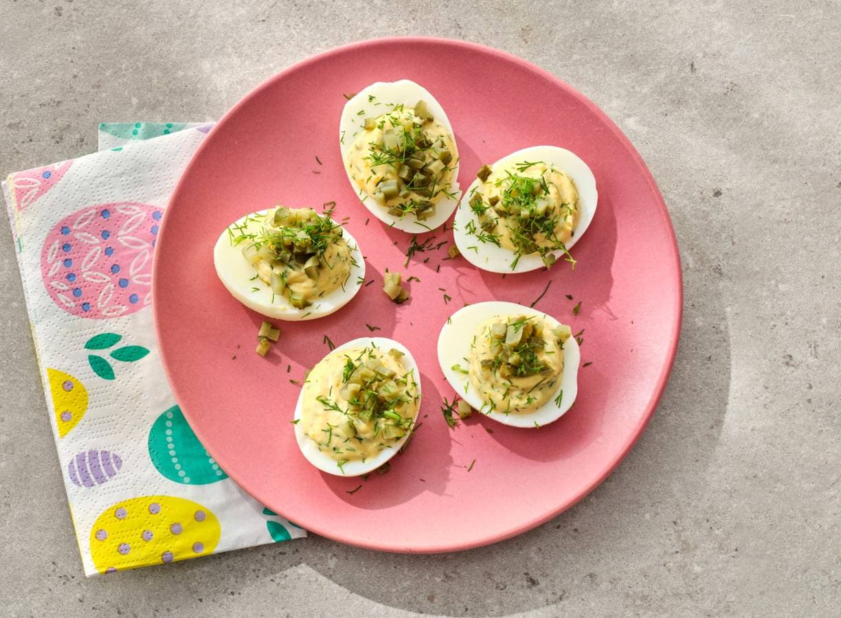 Gek op gevulde eieren? Probeer deze variant met augurk en dille eens! Lekker knapperig en fris.