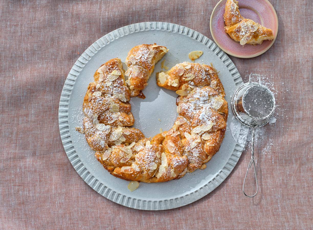 Gek op amandelcroissants? Zet deze spectaclaire amandelcroissantkrans op tafel. Een feestje om te zien en samen van te genieten!