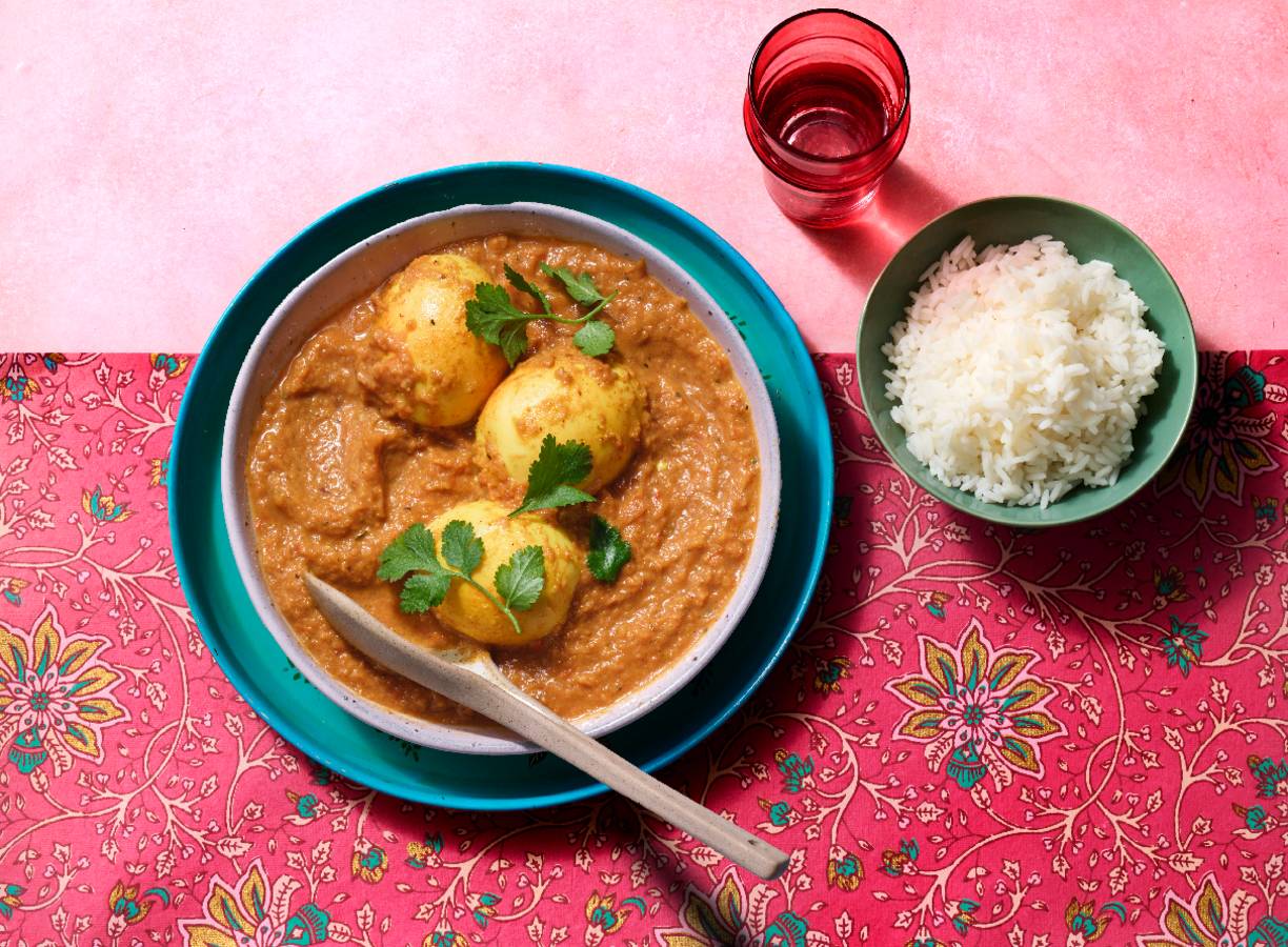 kookstaptip:Eiercurry is ontstaan in traditionele Indiase dhaba’s (wegrestaurants), die maaltijden aanbieden aan reizigers, zoals busreizigers en vrachtwagen - chauffeurs. Het werd populair vanwege de betaalbaarheid en veelzijdigheid van eieren, die goed smaken opnemen. De tomaten-uiensaus is lekker kruidig door kaneel, kardemom en garam masala. Lekker als snack of met rijst of naan erbij.