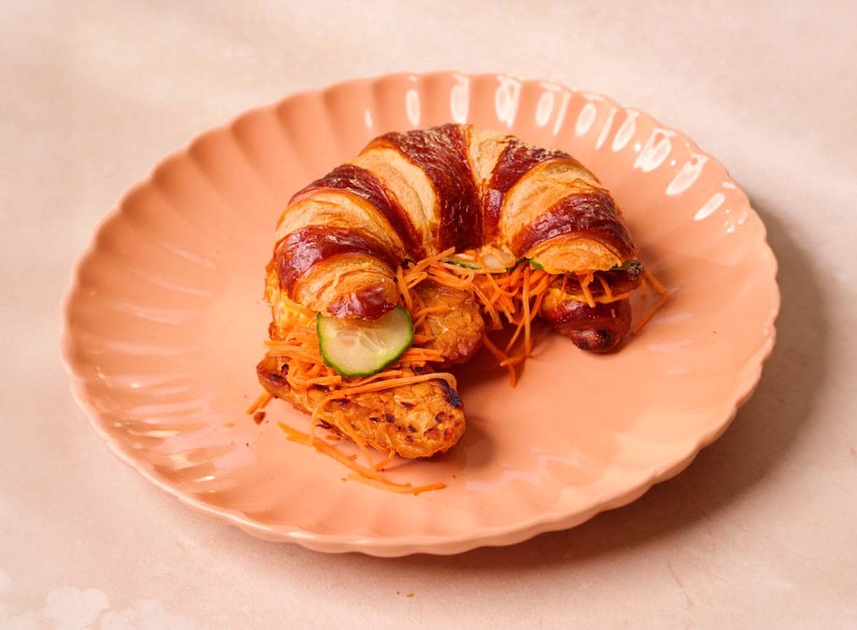 Fusion van een croissant, een pretzel én een bahn mi. De combinatie van knapperig deeg met verse kruiden en ingelegde groenten zal je verrassen!
