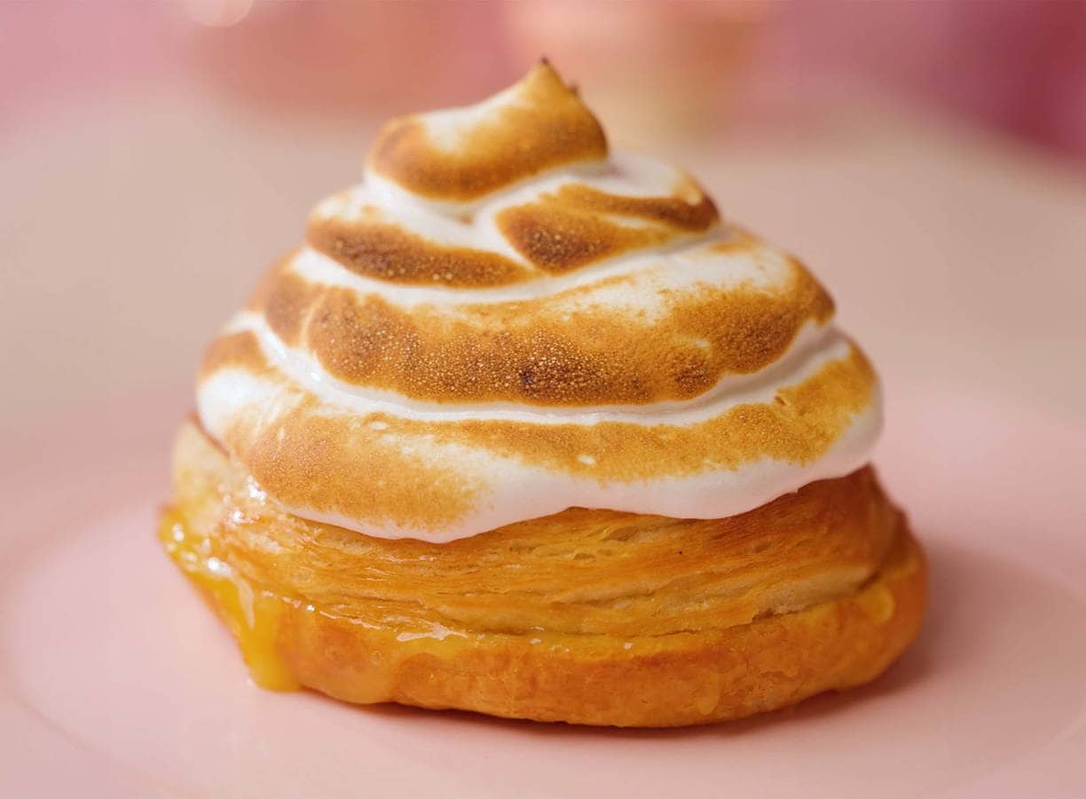 Luxe croissantbun gevuld met friszure lemon curd en getopt met luchtige meringue. Een zoete verwennerij die het beste van twee werelden combineert: knapperig croissantdeeg en een romige lemonmeringuetaart!