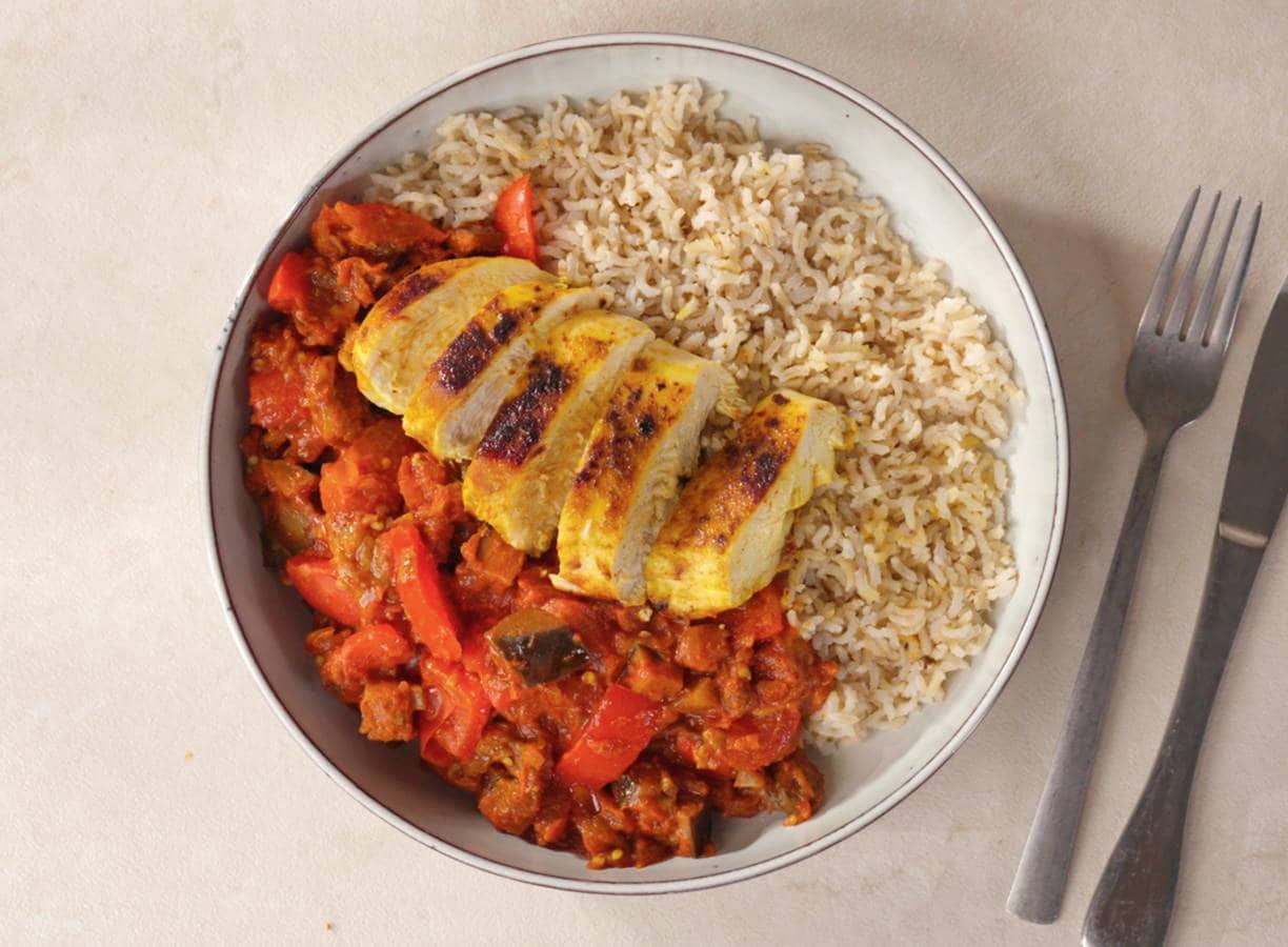 In een handomdraai zet jij een heerlijke gepofte aubergine met kip en rijst op tafel. No waste en helemaal biologisch!