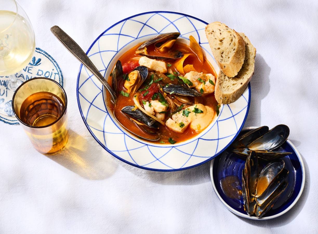Proef de zee met deze aromatische vissoep, rijkelijk gevuld met mosselen en kabeljauw. Stukje brood erbij, pittige aioli en je hebt gelijk zin in de vakantie!