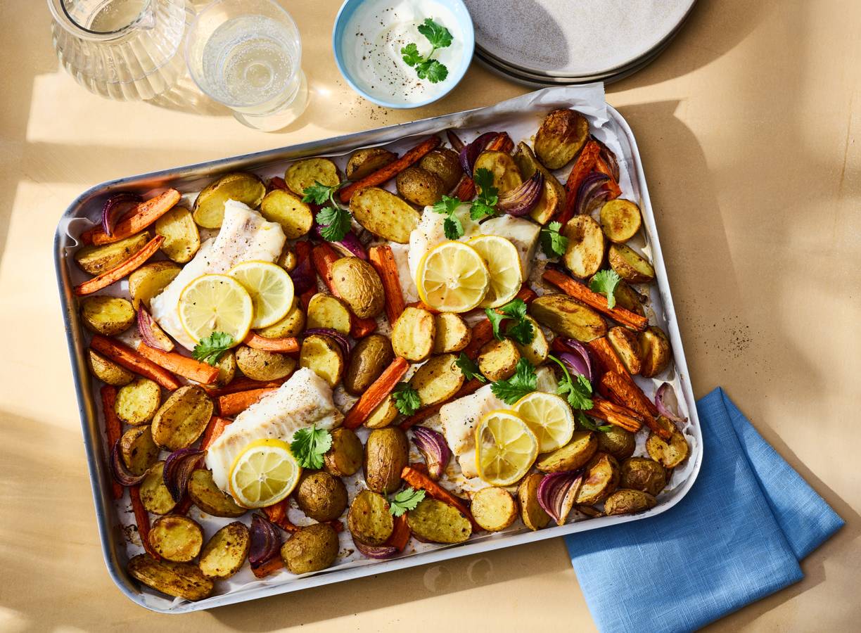 Traybake met kabeljauw en masalakrieltjes (advertorial)