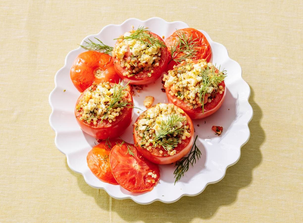 Gevulde tomaat met parelcouscous en ansjovis uit de airfryer