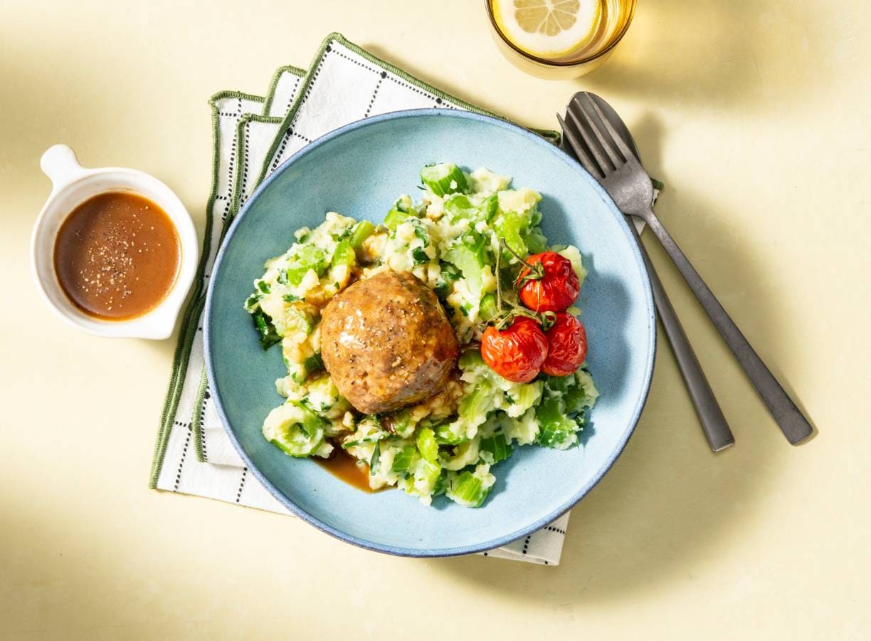 Bleekselderij in je stamppot? Doen! Met een lekkere frisse twist, zoete romaatjes en een juicy gehaktbal maak je ‘m helemaal af. Ideaal comfortfood voor de doordeweekse avond.