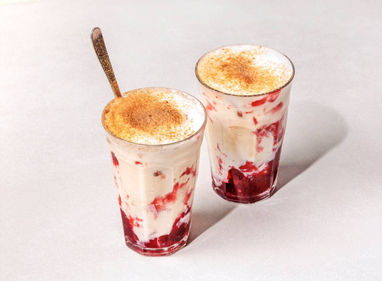 Verknocht aan je chai latte to go? Je maakt ’m net zo makkelijk zelf. Proef deze iced variant met espresso, kokosdrink en kersenjam en je wil niet meer anders.