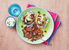 Feest op je bord met deze loaded-aardappelpakketjes. Wacht maar tot je ze uitpakt! Goedgevuld, met een frisse kidneybonensalade, avocado en sour cream.