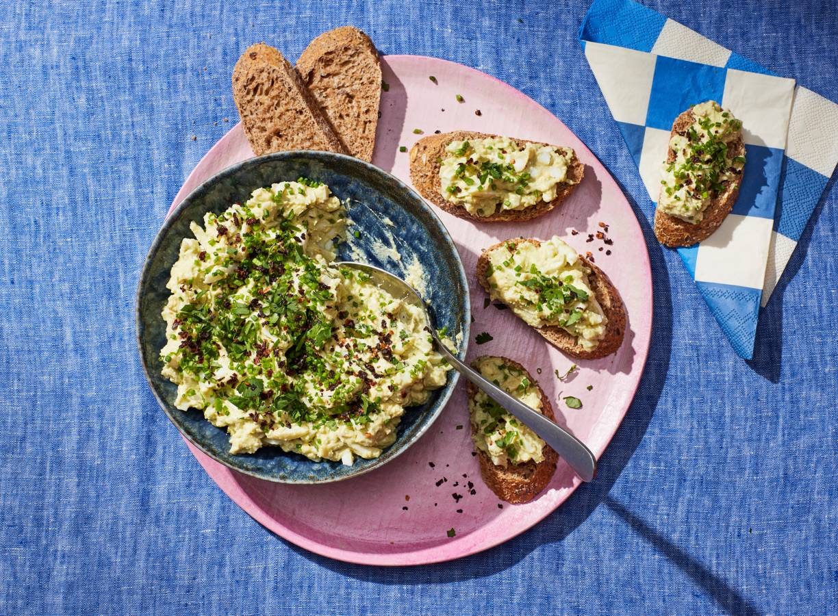 variatietip:Halveer de hardgekookte eieren en prak de eidooiers door de avocadopuree. Schep de groene puree terug in de eieren voor heerlijk gevulde eieren!