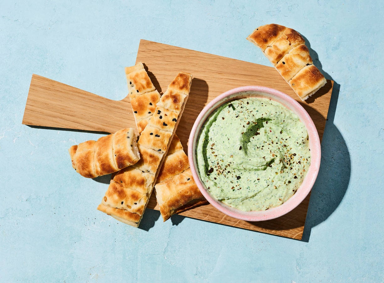Gebruik de leftovers uit jouw bakje zuivelspread voor een heerlijke groene-kruidendip. Lekker voor op stokbrood of een stuk vlees zoals biefstuk, of op een soepje.