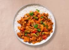 Voeg de tomatenpuree toe en bak 1 min. op middelhoge tot hoge temperatuur. Voeg de tomaten, kruidenmix en kookroom toe, breng aan de kook en laat 5 min. zachtjes pruttelen. Serveer de gehakt stroganoff met de rijst.