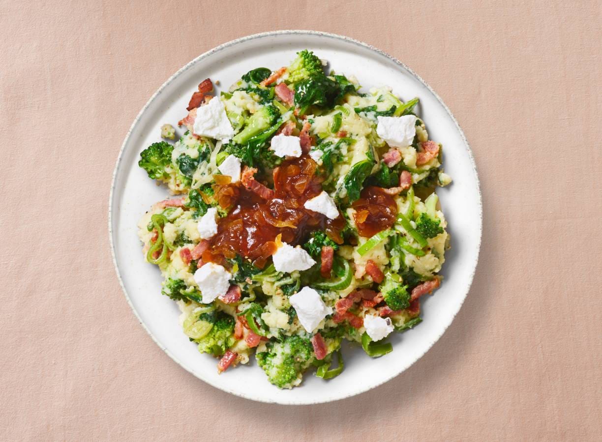 Zin in een heerlijke maaltijd zonder uren in de keuken te staan? Met het AH snelle stamppot verspakket combineer je smeuïge aardappelpuree, groenten, spekjes en frisse geitenkaas tot een verrassend lekkere stamppot met een moderne twist.