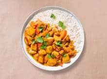 Voeg de boter en kookroom toe aan de saus en laat door en door warm worden. Serveer de butter chicken met de rijst.