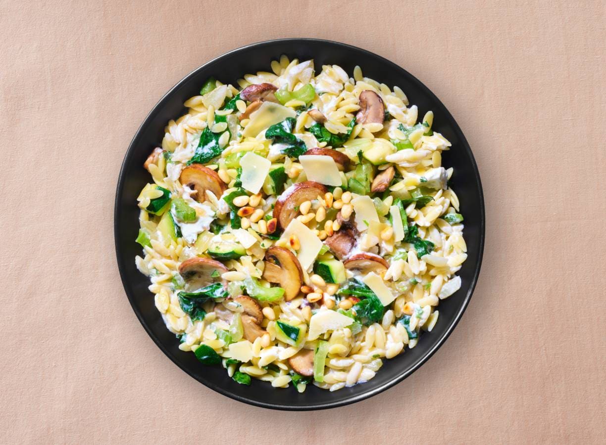 Een herfstige orzo met kastanjechampignons en een romige saus. Met dit AH verspakket maak je nu dit heerlijke gerecht. Perfect voor een regenachtige of koude avond.