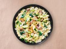 Breng het geheel aan de kook en laat afgedekt 25-30 min. garen tot het water is opgenomen, roer regelmatig tot de orzo gaar is.
