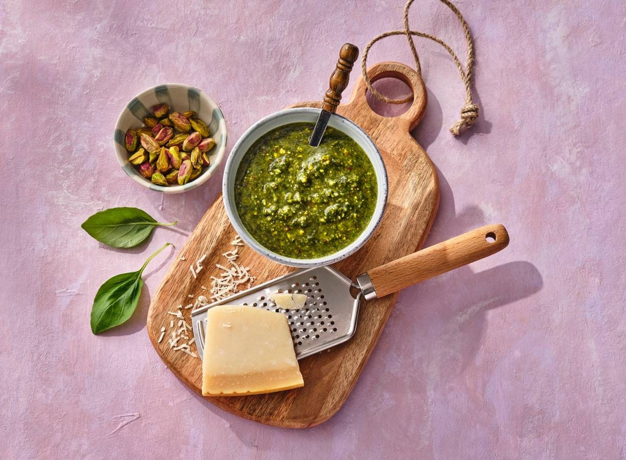 Fan van pesto? Dan moet je deze pistachevariant eens proberen. Pistachenoten, Parmezaan, basilicum en goede olijfolie maken ’m vol van smaak, romig en nét even anders. In 15 minuten klaar en lekker door de pasta, bij geroosterde groente of op brood.