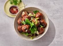 Deze sappige gehaktballetjes garen langzaam in de slowcooker in een rijke saus van ketjap, sambal en kokoscrème. Afgetopt met bosui en koriander zijn ze perfect als borrelhap, maar ook onweerstaanbaar bij noedels of rijst.