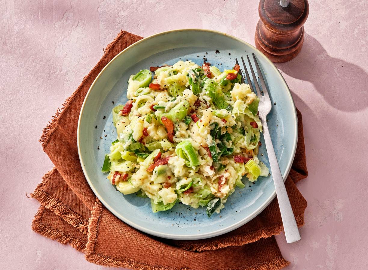 Sla die standaard ovenschotel eens over en geef je prei een twist: maak deze hartige stamppot met romige aardappelpuree met lekker veel oude kaas en krokante spekjes voor een zoutige crunch.