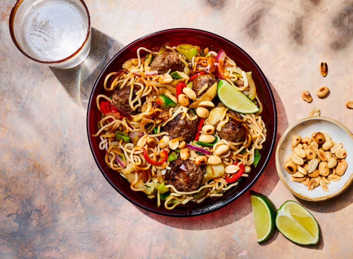 Weinig tijd om te koken? Maak een snel wokgerecht met noedels, groente, gehaktballetjes en teriyaki. Lekker met knapperige pinda’s en een fris partje limoen. En: in 20 minuten op tafel!